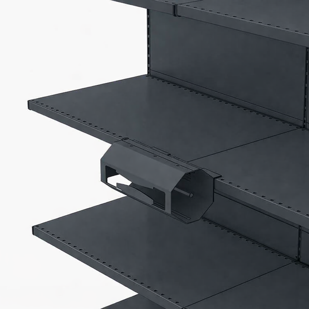 Оптимизация пространства торгового зала — установка непосредственно на существующие стеллажи без занятия полезной площади пола.