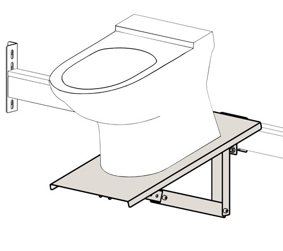 Держатель представляет собой прочный металлический кронштейн с регулируемыми упорами и фиксаторами, который крепится на горизонтальную траверсу стеллажа. Унитаз размещается вертикально, опираясь на держатели, что обеспечивает устойчивое положение даже для тяжелых моделей из фаянса и фарфора.