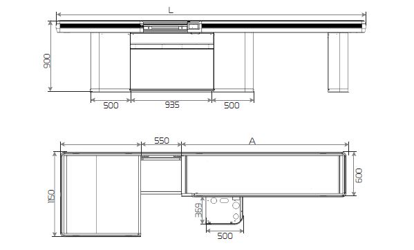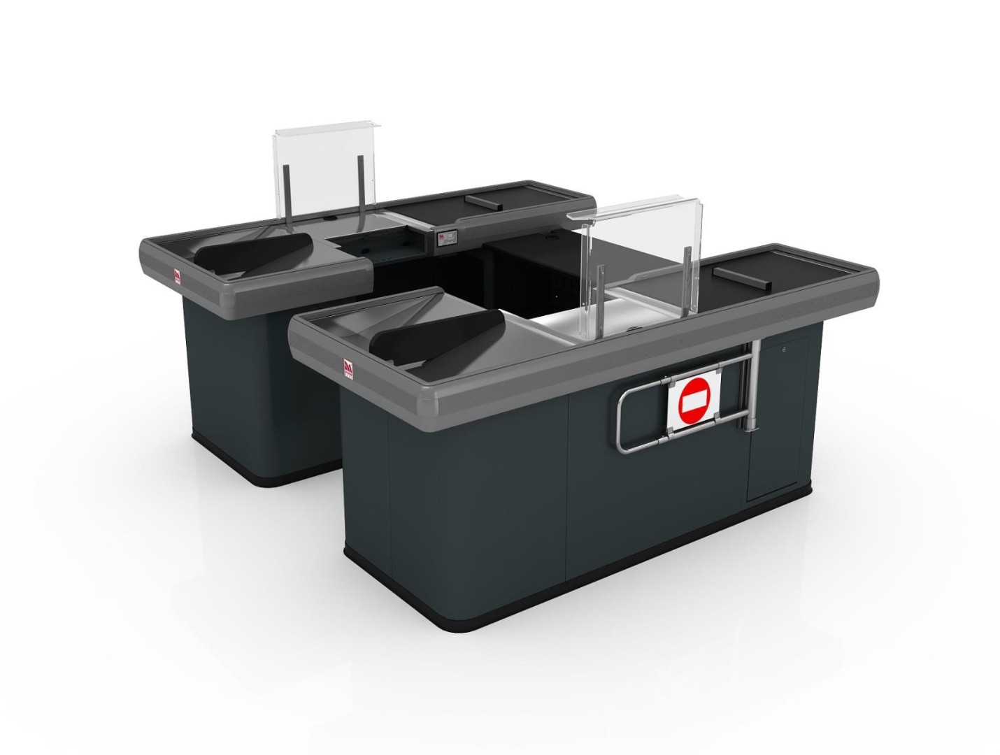 Кассовые прилавки ТВИН с широким накопителем используется парно(правый и левый), благодаря укороченной столешнице, остается необходимый проход для кассира.