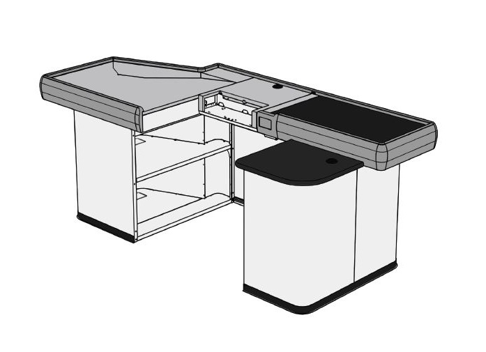 Возможно дополнить следующими аксессуарами: ящик для бумаг, внутренняя полка угловая, защита сканера, ограничитель боковой, держатель пин-пада, мачта с плафоном и номером кассы, полка в тумбе, крючок для пакетов, панель электрическая, палочка разделитель "Следующий клиент", лоток "Следующий клиент", денежный ящик Flip-top, ограничитель прохода и др.