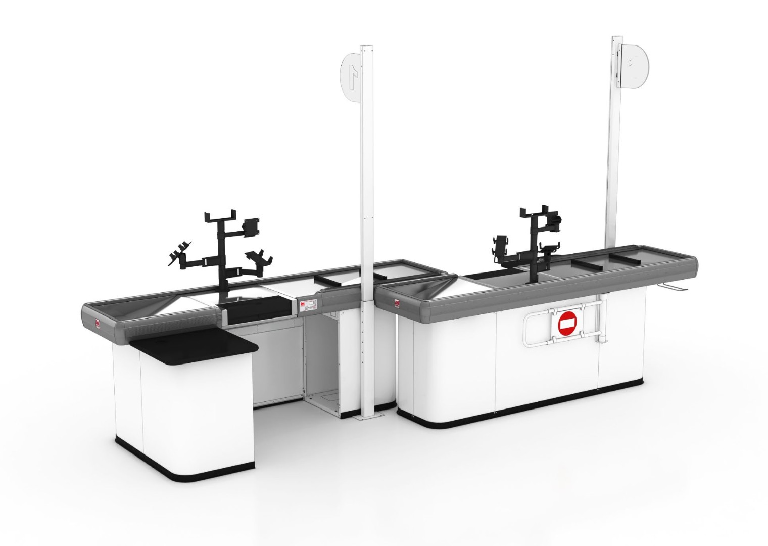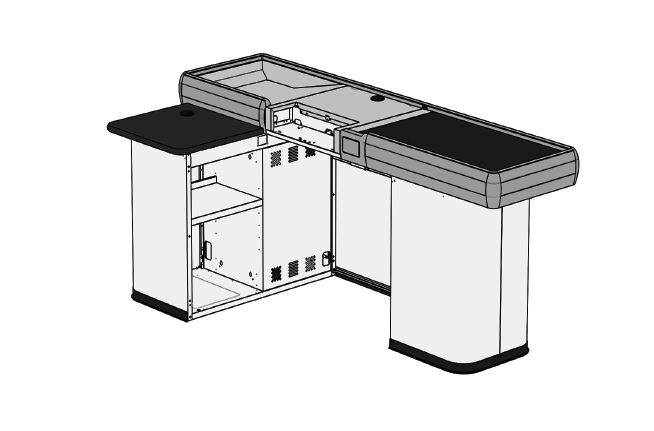 Возможно дополнить следующими аксессуарами: ящик для бумаг, внутренняя полка, защита сканера, ограничитель боковой, держатель пин-пада, мачта с плафоном и номером кассы, полка в тумбе, крючок для пакетов, панель электрическая, палочка разделитель "Следующий клиент", лоток "Следующий клиент", денежный ящик Flip-top, ограничитель прохода и др.