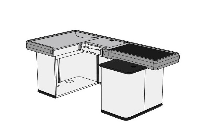 Кассовые прилавки ТВИН с широким накопителем используется парно(правый и левый), благодаря укороченной столешнице, остается необходимый проход для кассира.