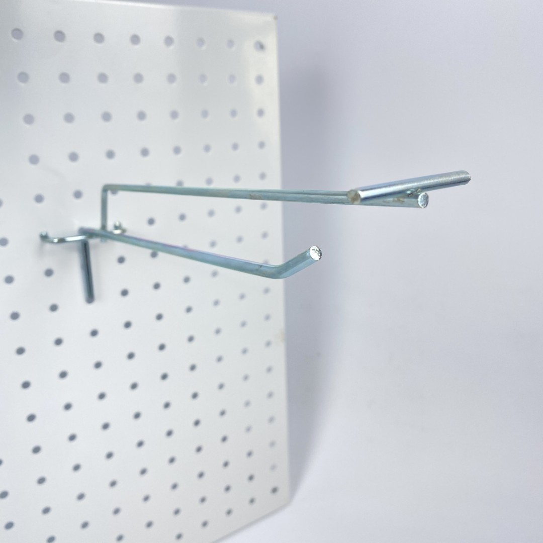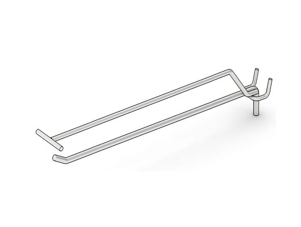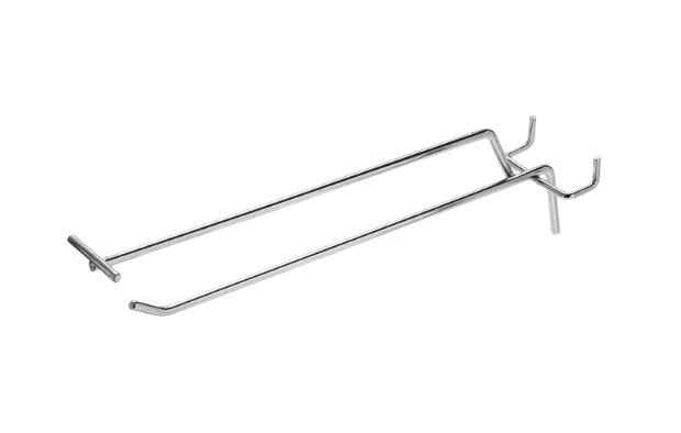 Компактное и надежное решение для компактного размещения товаров на перфорированных панелях (стендах). Одинарный крючок оснащен специальной планкой для размещения ценников, что позволяет удобно информировать покупателей о стоимости товара.