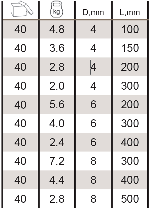 Варианты исполнения (Длина (L) / Диаметр (D) / Грузоподъемность):