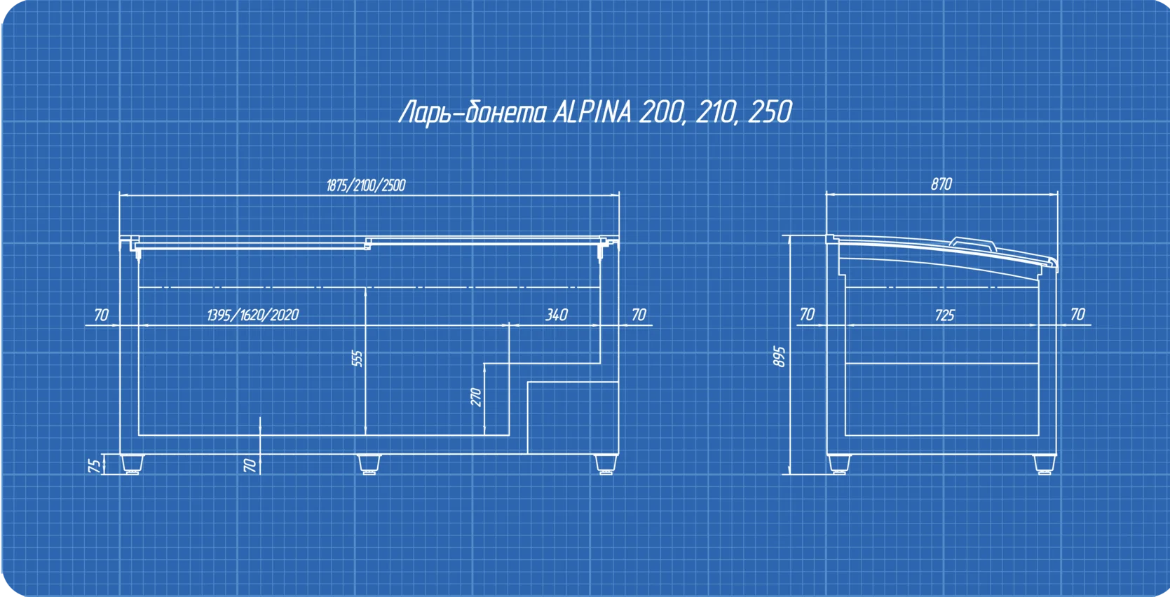 Ларь-бонета ALPINA 250 со встроенным статическим холодообеспечением