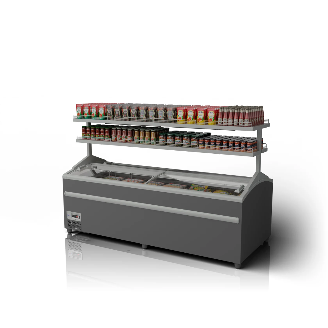 Лари-бонеты островные CORTINA предназначены для супермаркетов с ограниченной торговой площадью. Доступ к продуктам осуществляется с двух сторон, позволяя максимально эффективно использовать пространство магазина.
