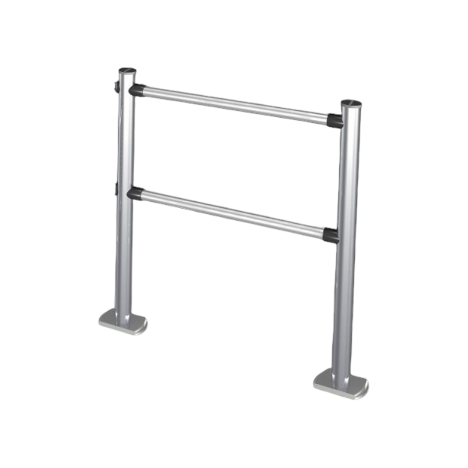 Хромированные ограждения можно соединять в общую линию с флажковыми турникетами, создавая единую систему контроля доступа: