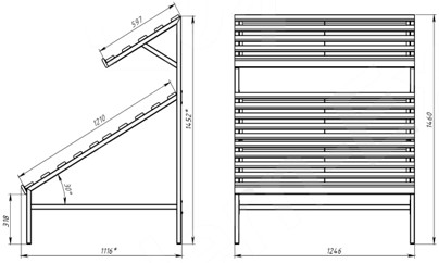 Базовая комплектация: Готовый металлический каркас с деревянными рейками и система экспозиции (готова к использованию). (Корзины/ящики приобретаются отдельно).