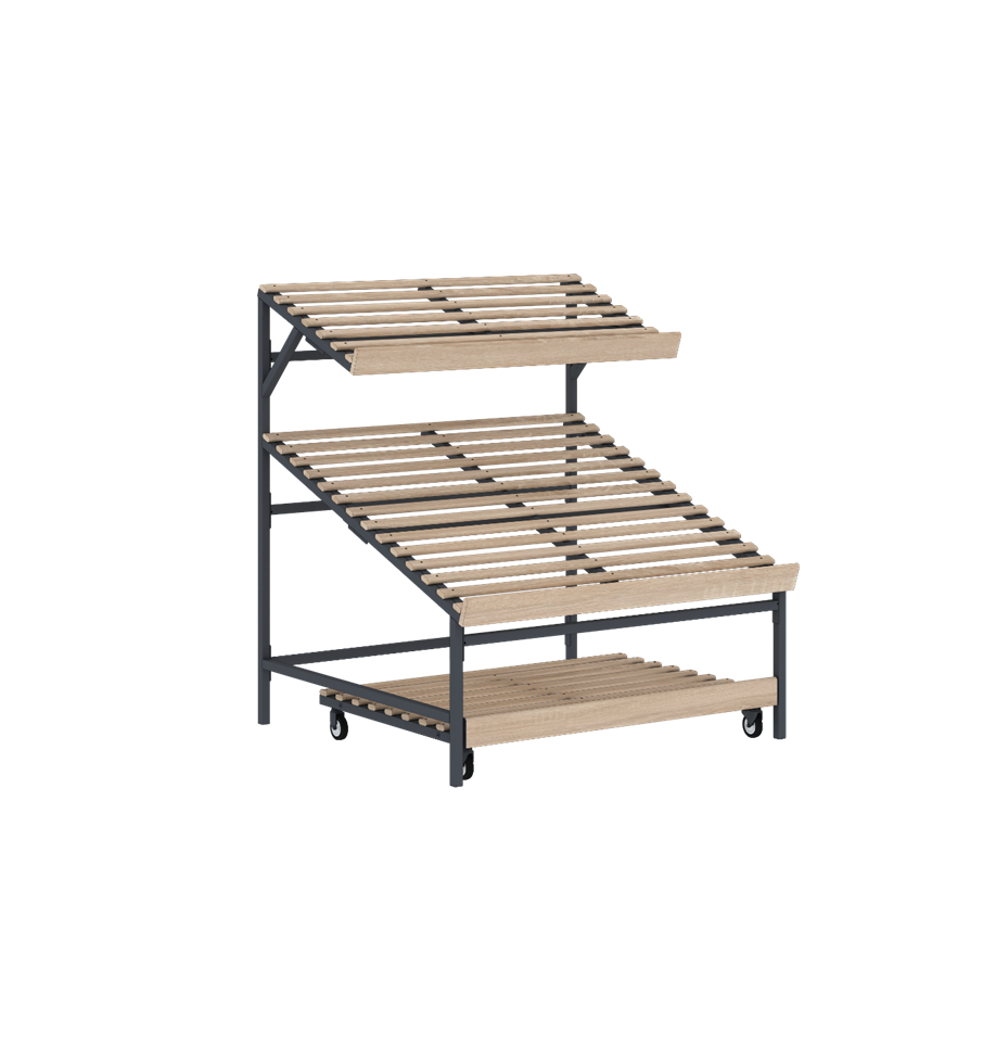 Два уровня для презентации: Позволяют эффектно зонировать ассортимент (например, фрукты сверху, корнеплоды снизу) и значительно увеличить площадь выкладки без ощущения захламленности.