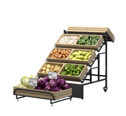 Мобильный овощной стеллаж с выездным подиумом