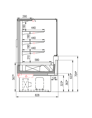 - Витрину можно монтировать в линию. Кубический дизайн витрины позволит использовать ее в магазинах с кубическим дизайном остальных