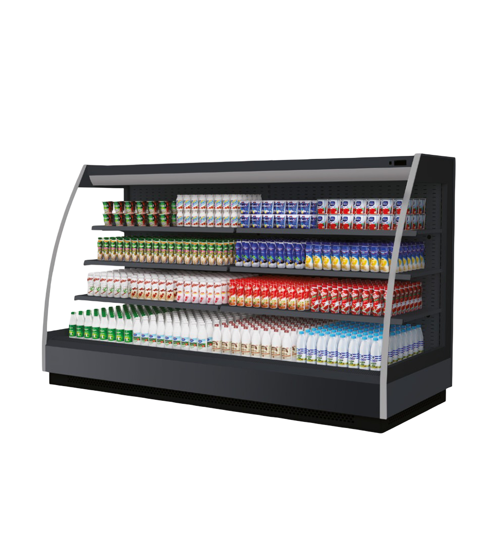 Минимальная высота нижнего фронта для увеличения вертикальной экспозиции. Максимальный обзор продуктов и близость к покупателю. Верхняя светодиодная подсветка внутреннего объема.